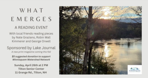Join us for What Emerges, a community reading event celebrating nature, storytelling, and connection. Held at the Tilton Senior Center, this gathering features local voices sharing selected works by Nate Graziano, Robin Wall Kimmerer, and George Orwell.
